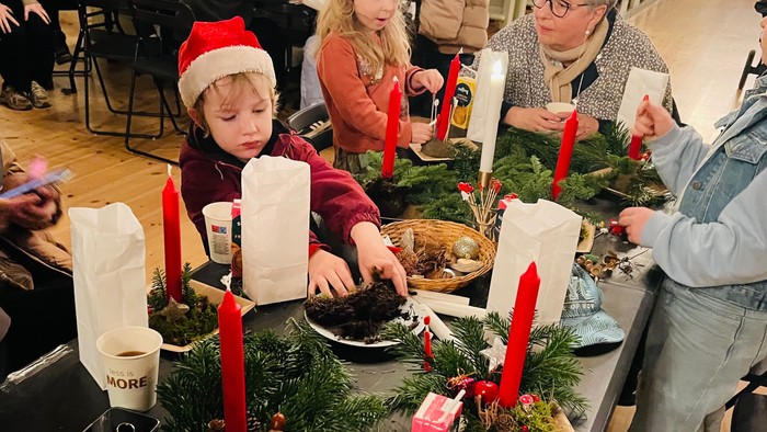 Der er Luciaoptog, rytmisk leg, LysLevende væsener og vi skal høre Juleevangeliet fortalt som sokkedyrsteater. Vi laver juledekorationer, pynter honninghjerter, laver juleappelsiner og sender julepostkort til dem vi holder af og meget, meget mere.