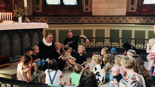 Børnevenlig gudstjeneste med bibelfortælling, sang, leg og nadver.
